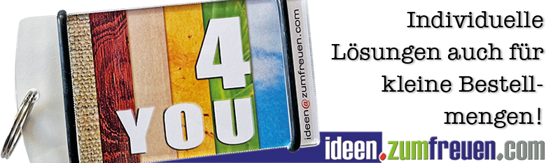 Schlüsselanhänger individuell mit Logo, Namen, Foto bedrucken © einfach schnell und günstig. Hotels bewerben damit erfolgreich Angebote / Packages, ... mehr dazu >